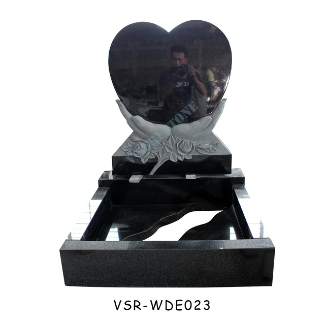 ヨーロッパの彫刻手ハート デザイン黒御影石の墓石